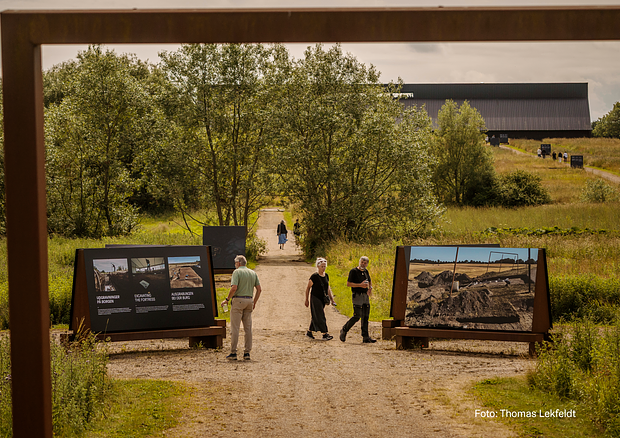 Til Vikingeborgen Borgring har vi iscenesat landskabet omkring det nye oplevelsescenter samt udviklet diskrete nedslag omkring centret, som er med til at formidle Borgringens historie og placering i istidslandskabet.