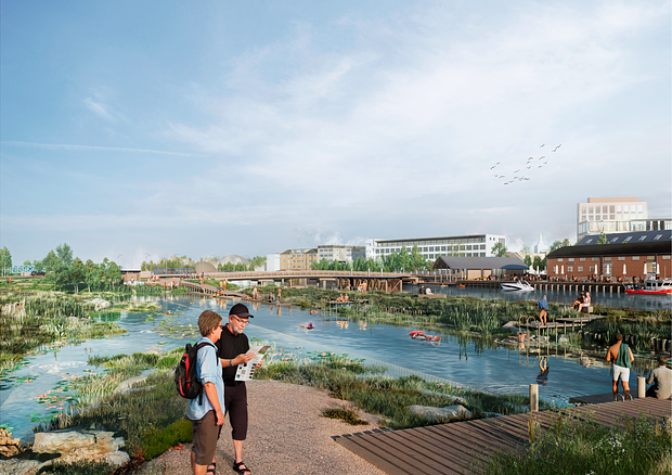 At the heart of Tronholmen, a new island will be developed offering a wealth of recreational opportunities—an equal counterpart to the urban development on Bolværksgrunden. This new river destination invites close engagement with the river and surrounding landscapes. Meadow habitats are preserved, opening up myriad experiences both on land and in the water. Here, everyone can approach the river intimately, feel the current, and enjoy amenities such as changing rooms, a sauna, and viewpoints.