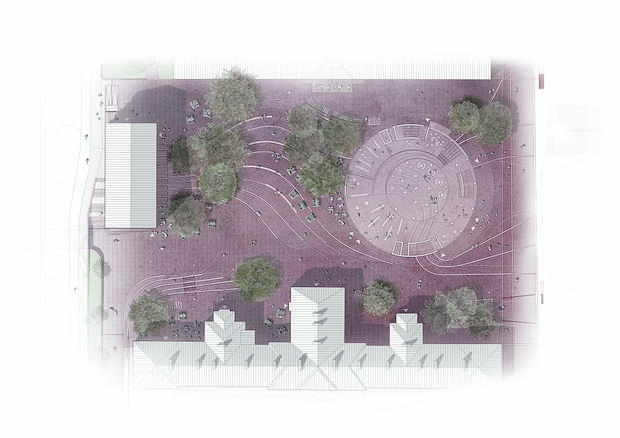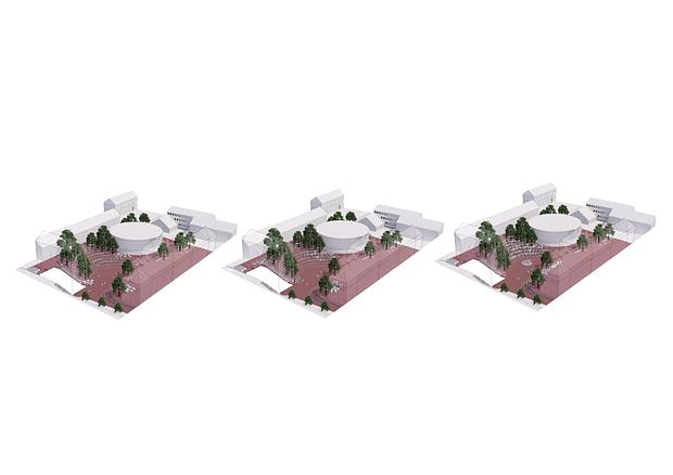 For at sikre denne dynamik, skabes der aktive kantzoner, hvor aktiviteter inde i bygningerne trækkes med ud på pladsen. Terrænet bearbejdes så der sikres god tilgængelighed. Gode adgangsforhold sikrer, at områdets brugere nemt kan flyde mellem de forskellige aktiviteter i de omkringliggende bygninger. Grønne lommer af græs og beplantning møder de hårde belægninger og byder sig til som opholds- og pauserum.
