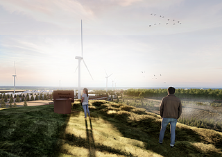 Vesthimmerland Go Green is a new energy landscape that combines renewable energy production with large-scale ecological enhancement. In addition to 21 wind turbines, 630 hectares of solar panels, and a 48-hectare industrial cluster, the project establishes 70 hectares of new nature.