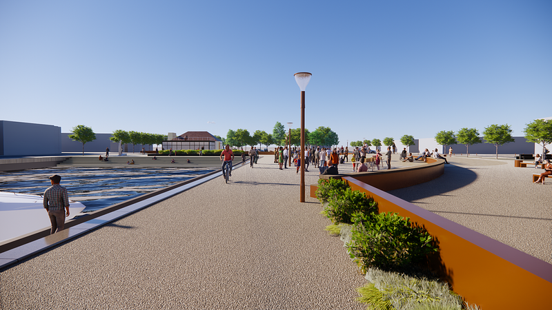 En vigtig del af opgaven er derfor at løse de klimarelaterede udfordringer med stigende havvandsstand og hyppigere stormflodshændelser kombineret med øget nedbør og stigende grundvand. Vi har set denne udfordring som en mulighed for at planlægge med vandet, og dermed lade det berige byen med rekreative oplevelser til glæde for borgere og besøgende. Nøgleordene for løsningen har været at sammenbinde attraktioner, landskaber og byrum og gøre vandet nærværende. Med løsningen vil vi respektere områdets identitet med de værdifulde kultur- og havnemiljøer, kystkanten, den bynære ro blandet med havnens atmosfære af aktivitet og fællesskab. Med programmeringen af de byrum der ligger langs kystlinjen, vil vi give plads til et fremtidigt levet liv, til forandringer og til de historier, der tager tid at skabe.