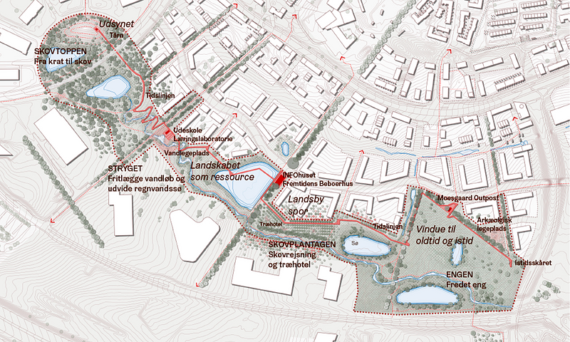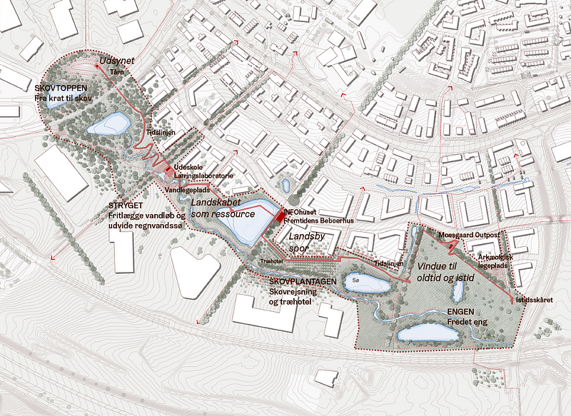 Midt i Lisbjerg vokser en park frem, hvor natur og kultur flettes sammen. Her bliver landskabet en levende tidslinje med fortællinger, stier og mødesteder. Visionen er at skabe hele kommunens udendørs oplevelses- og formidlingsrum: en natur- og kulturpark, hvor mennesket og naturen bringes sammen i landskabsrum fyldt med historiske fortællinger og stærke naturoplevelser.