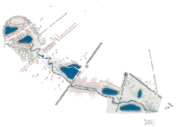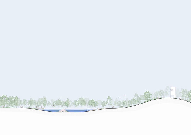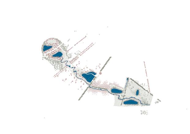Parken integrerer regnvandshåndtering og biodiversitet som en del af oplevelsen. Vandet fungerer både som rekreativt og karakterskabende element, og et genåbnet vandløb samt udvidede regnvandsbassiner understøtter naturens dynamik. De grønne og blå strukturer danner ramme om mødesteder, legepladser, aktiviteter, tur-ruter og stille zoner til refleksion.